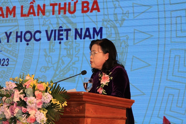 Chủ tịch Tổng hội Y học Việt Nam Nguyễn Thị Xuyên phát biểu tại buổi lễ.