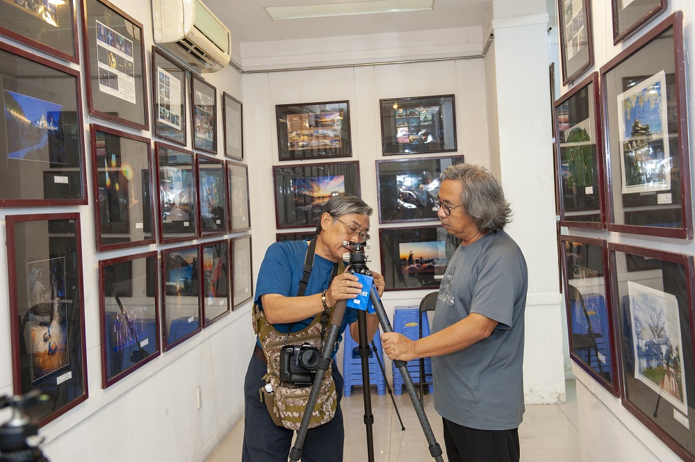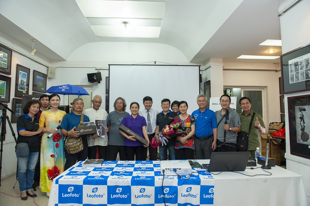 Đại diện Hội Nhiếp ảnh TP.HCM, Nhà phân phối sản phẩm đến từ thương hiệu Leofoto chụp ảnh cùng các nghệ sĩ nhiếp ảnh tham gia trải nghiệm.
