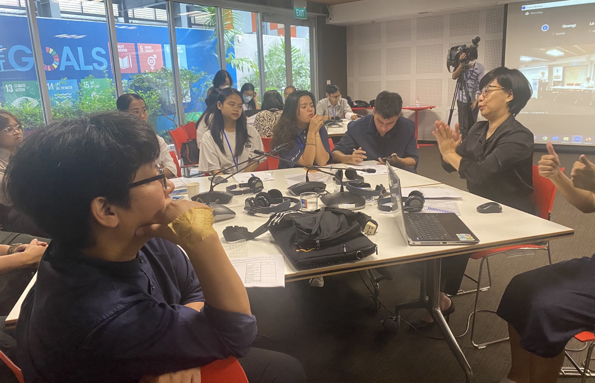 Hình ảnh trao đổi bằng thủ ngữ tại hộ thảo.