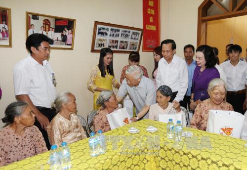 Nhân kỷ niệm 70 năm Ngày Thương binh-liệt sĩ, chiều 25/7, Tổng Bí thư Nguyễn Phú Trọng đã tới thăm, tặng quà tại Trung tâm Nuôi dưỡng và điều dưỡng người có công số 2 Hà Nội (thôn Viên Ngoại, xã Viên An, huyện Ứng Hòa). Cùng tham dự có Bí thư Thành ủy Hà Nội Hoàng Trung Hải, Bộ trưởng Bộ LĐTB&XH Đào Ngọc Dung.