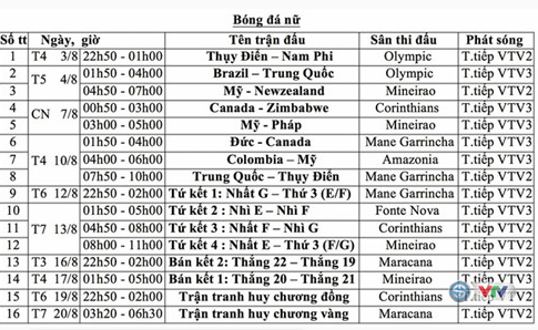 | Lịch tường thuật trực tiếp trên VTV. |