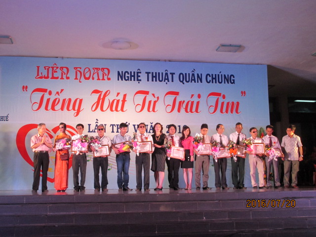 HOANHAP.VN - Sáng ngày 20 tháng 7 năm 2016, tại Trung tâm văn hóa Thông tin tỉnh TT Huế đã diễn ra liên hoan nghệ thuật quần chúng “Tiếng hát từ trái tim” lần thứ V, năm 2016 do Hội người mù tỉnh TT Huế tổ chức.