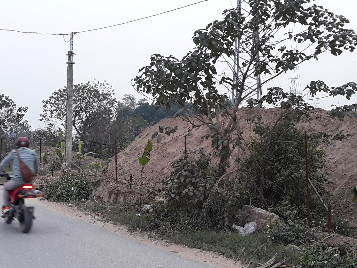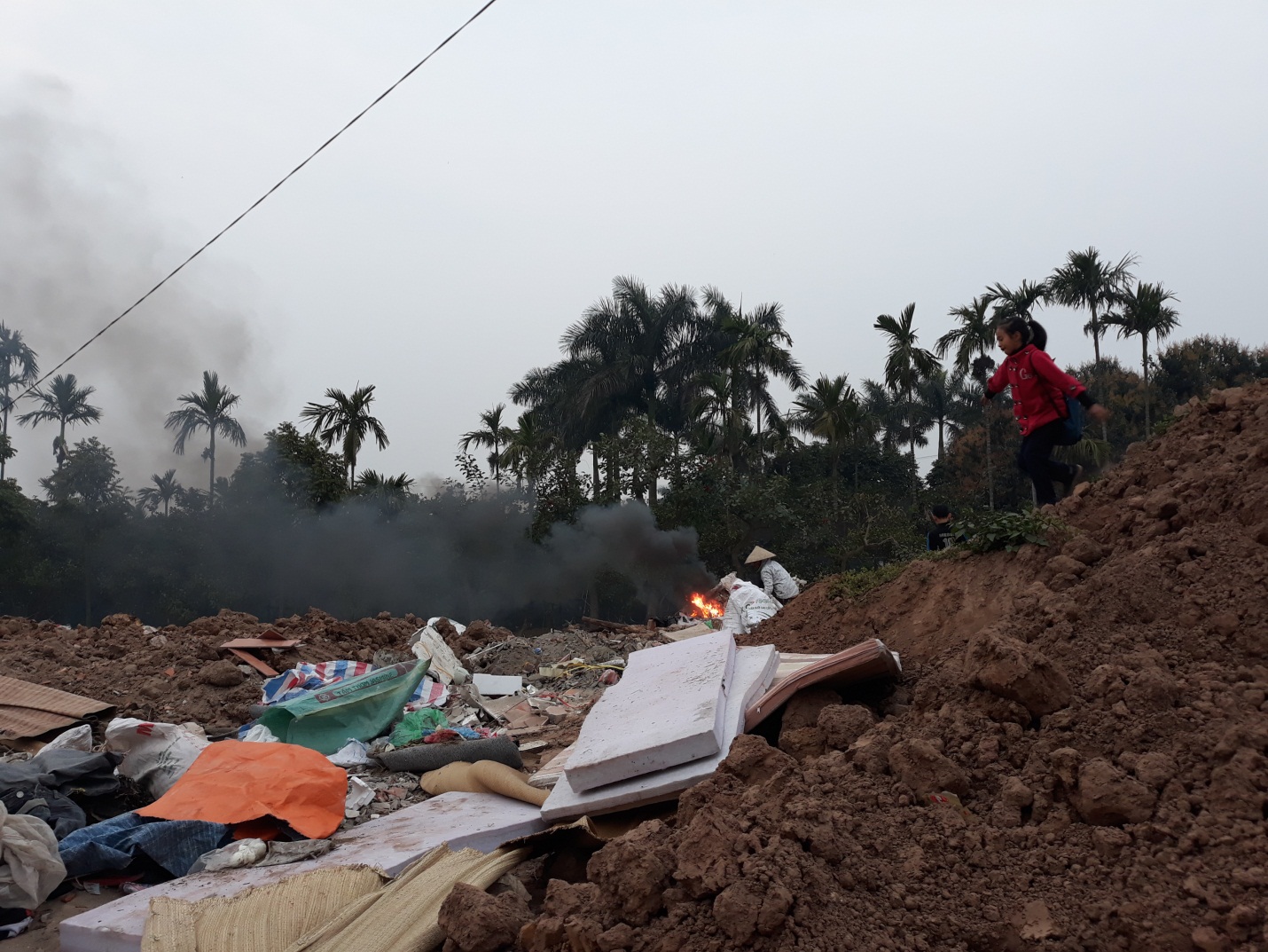 rác thải, chất thải rồi được phủ lên bằng một lớp đất trồng màu; gần đường vào