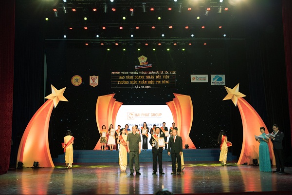 | Đại diện Hải Phát Invest lên nhận giải thưởng Top 10 Thương hiệu, nhãn hiệu tin dùng 2018. |