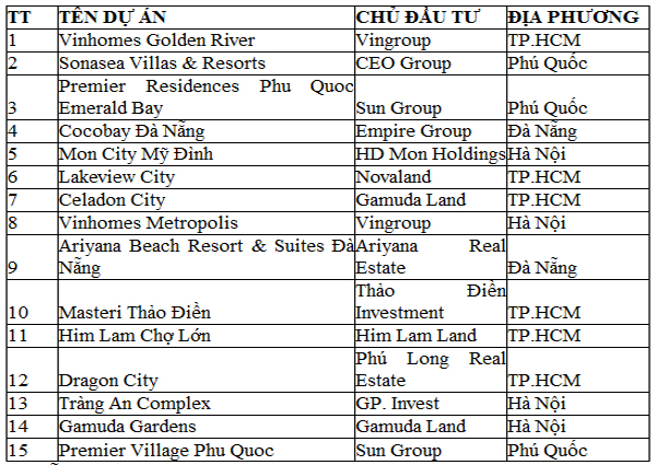 Các dự án có tên trong danh sách dưới đây lọt top 15 dự án BĐS hấp dẫn nhất Việt Nam 2016: