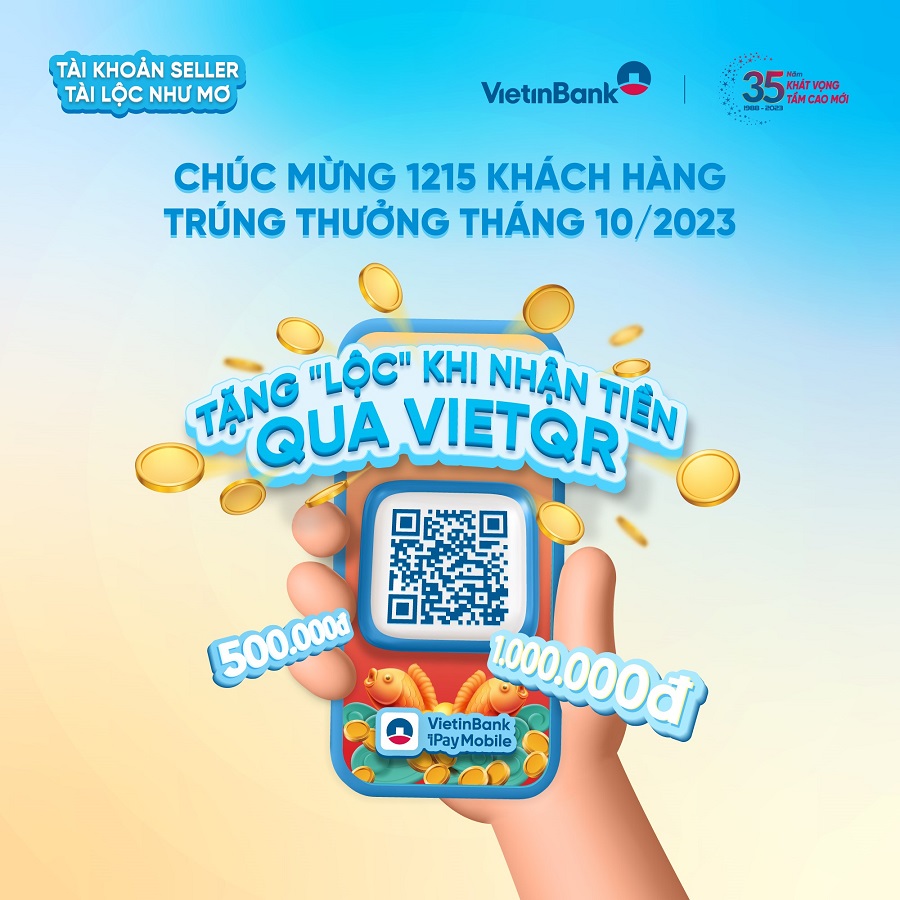 VietinBank xin chúc mừng các khách hàng may mắn nhận được giải thưởng của Chương trình kỳ tháng 10/2023. Hiện tại, “Tài khoản Seller - Tài lộc như mơ” vẫn đang diễn ra đến hết ngày 31/1/2024, hãy tham gia chương trình ngay để có cơ hội nhận “lộc” từ VietinBank.