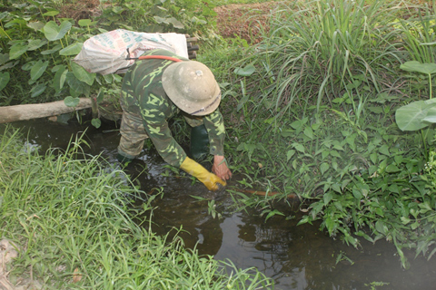 Sức khỏe yếu, nhưng anh Diệu vẫn phải đi mò cua, bắt lươn nuôi vợ.