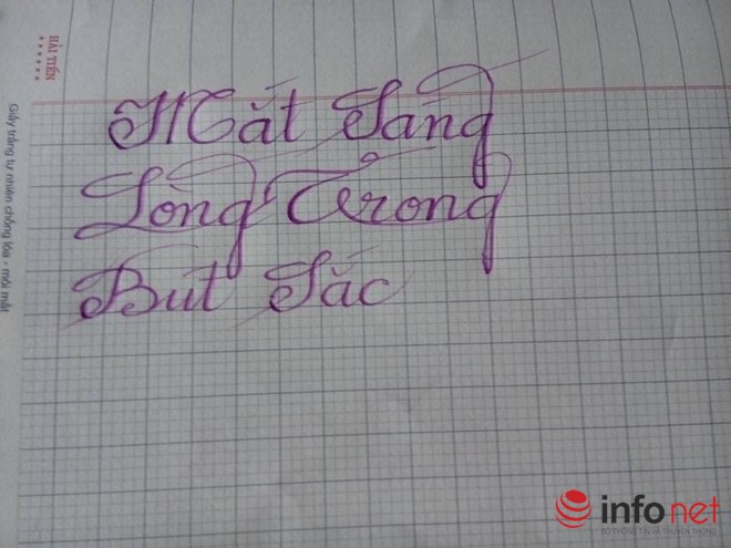 | Anh Phùng Văn Trường đang ngậm bút viết từng con chữ |