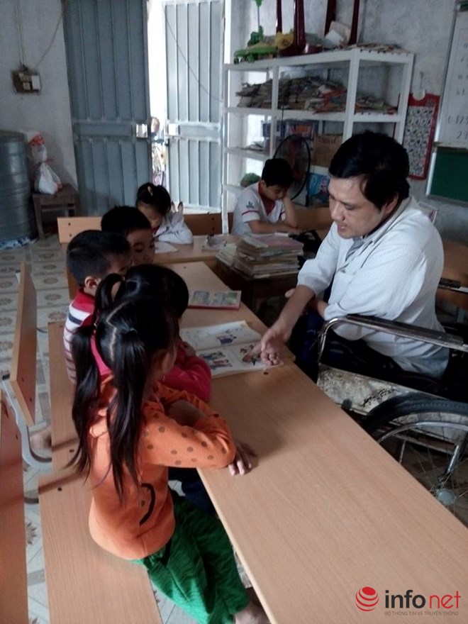 Hầu hết các học sinh đến lớp học của anh đều có lực học trung bình yếu, chủ yếu anh rèn chữ và hướng dẫn các cháu học bảng cửu chương, làm các con tính đơn giản. Nhìn hàng chục đứa trẻ đang chăm chú, nắn nót từng con chữ dưới sự chỉ bảo của người thầy đặc biệt dùng miệng viết chữ tôi thấy ánh lên một ngày mai tươi sáng của những đứa trẻ nơi miền quê nghèo.