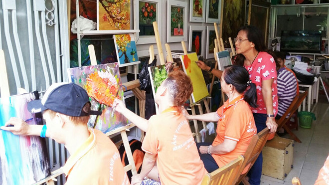Theo họa sĩ Bích Ngân, lớp học này mở từ tháng 3.2017. Ban đầu chỉ có vài người biết vẽ, nhưng tất cả đều có năng khiếu và say mê hội họa. Với sự hướng dẫn, đào tạo, bằng nhiều phương pháp phù hợp cho người khuyết tật, đặc biệt là điếc câm, nên tất cả các em đã biết vẽ.