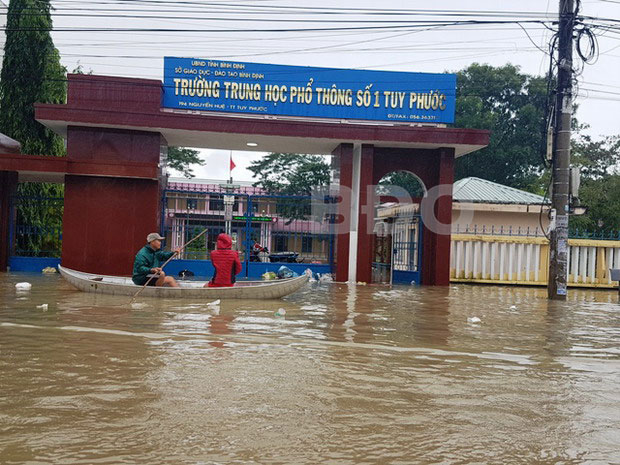 Đến chiều 4/12, nước lũ trên địa bàn huyện Tuy Phước đã bắt đầu rút nhưng rất chậm. Theo Ban chỉ huy PCTT-TKCN huyện Tuy Phước, đến 15h ngày 4/12, nước lũ vẫn cô lập hoàn toàn các xã phía bắc của huyện. Toàn huyện đã có gần 12.560 nhà dân ở các vùng trũng thấp bị ngập sâu từ 0,5-1 m. Nhiều khu dân cư ở thị trấn Tuy Phước, xã Phước Nghĩa, Phước Thuận, Phước Sơn và Phước Hòa bị lũ chia cắt. Một số tuyến đường bị ngập trong nước từ 0,5-0,7 m, có đoạn ngập sâu từ 1-1,2 m.