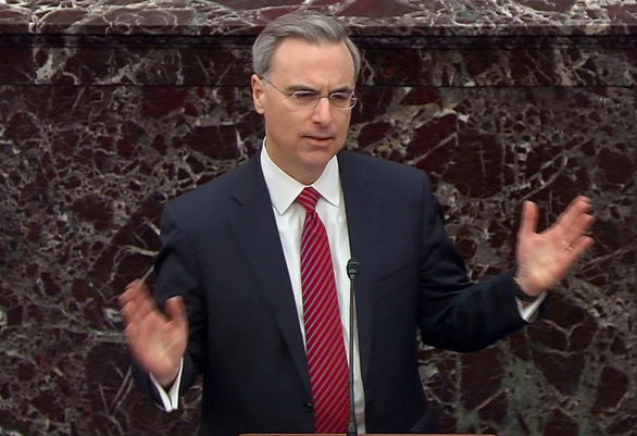 Cố vấn Nhà Trắng Pat Cipollone - trưởng nhóm luật sư bảo vệ Tổng thống Trump, tại phiên tòa đang diễn ra ở Thượng viện Mỹ - Ảnh: REUTERS