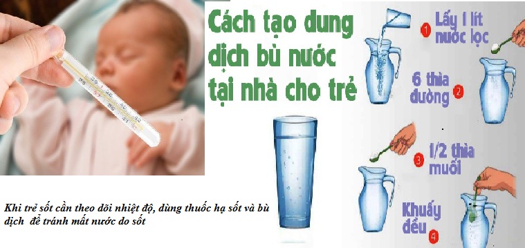 Điều cuối cùng nhưng cũng là điều vô cùng quan trọng, đó là bù nước cho bé khi sốt. Tốt nhất là nước cam, chanh, hoặc ít nhất là nước lọc... cơ thể lúc này cần nước hơn bao giờ hết, động viên bé uống từng chút một, uống bất cứ khi nào có thể...