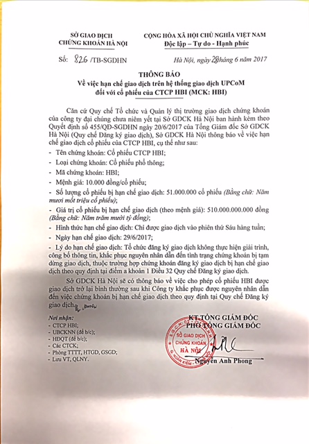 CTCP HBI được thành lập tháng 2/2010 với 5 cổ đông sáng lập gồm Công ty TNHH MTV dệt 19/5 Hà Nội, CTCP Tư vấn đầu tư xây dựng Ba Đình, CTCP thiết bị công nghệ Bảo Minh, Công ty TNHH Đại Hoàng Long và Công ty tài chính cổ phần hóa chất Việt Nam. Vốn điều lệ ban đầu 110 tỷ đồng. Là doanh nghiệp hoạt động trong ngành kinh doanh, tư vấn, môi gới đấu giá bất động sản…