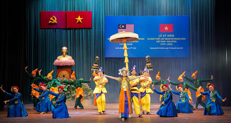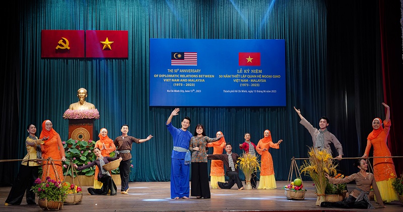Đội văn nghệ của Sở Văn Hóa - Thể thao TP Hồ Chí Minh và Tổng lãnh sự quán Malaysia cùng tham gia biểu diễn nghệ thuật chào mừng kỷ niệm.