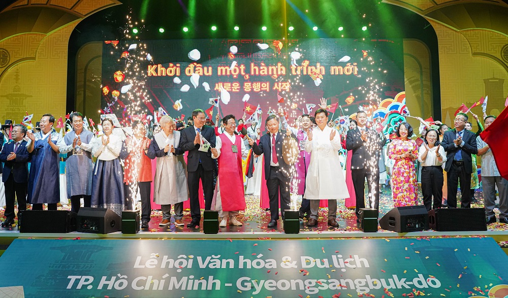 Lãnh đạo TP Hồ Chí Minh và tỉnh Gyeongsangbuk-do cùng thực hiện nghi thức khai mạc lễ hội.