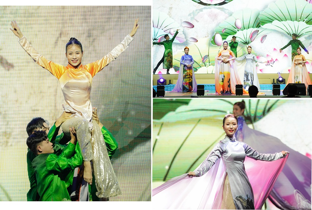 Các nghệ sĩ Việt Nam trình diễn áo dài truyền thống tại đêm khai mạc.