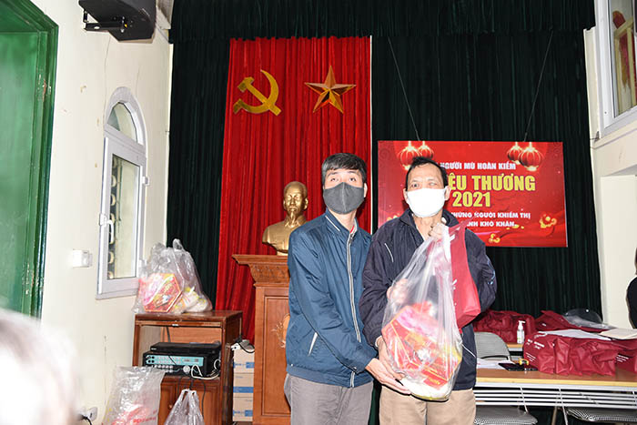 Trong Dịp này, toàn hội có 72 người khiếm thị có hoàn cảnh khó khăn được nhận quà; mỗi suất quà bao gồm 1 triệu đồng tiền mặt và những nhu yếu phẩm phục vụ các gia đình vui xuân đón tết như: gạo, bánh chưng, mứt Tết và thuốc thiết yếu… với tổng giá trị trên 100 triệu đồng.