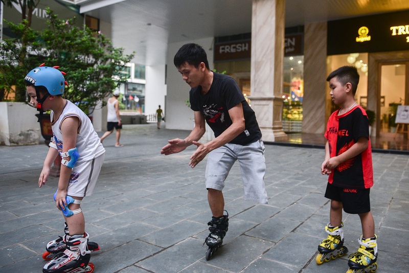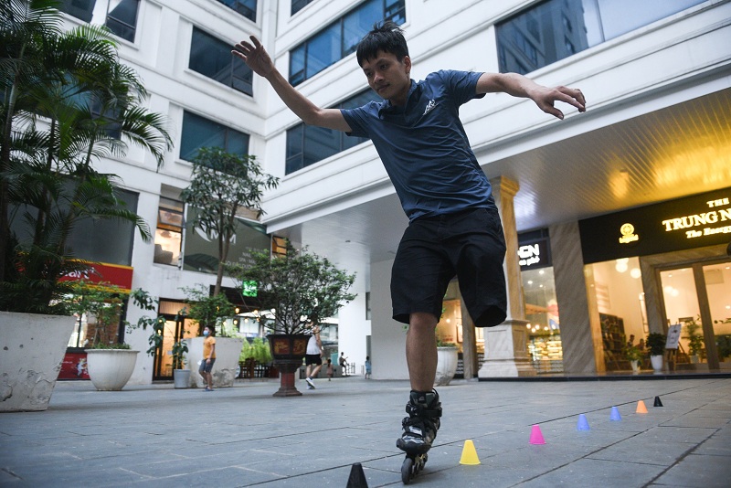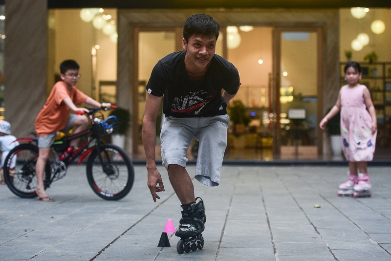 Mỗi buổi chiều tan làm, Bảo thường đến sân chơi tại một chung cư trên đường Trung Kính để dạy thêm patin. Hình ảnh chàng trai trượt một chân điệu nghệ khiến những người xung quanh không khỏi trầm trồ.