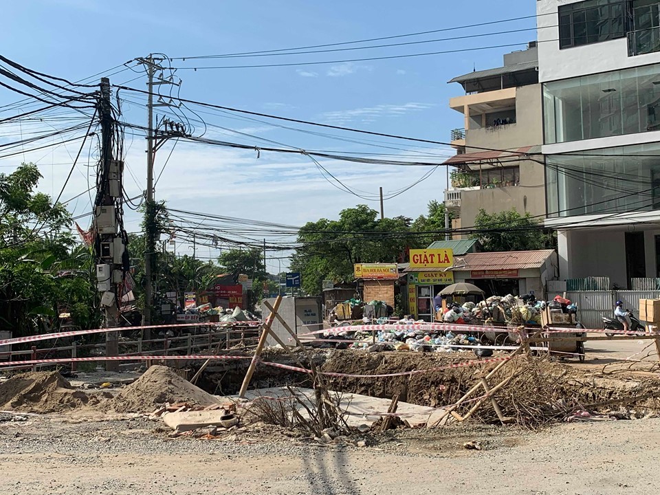 Bên cạnh đó, mặt đường đi qua dự án xuống cấp, nhiều ổ gà, gây khó khăn cho việc di chuyển nhất là các đợt mưa bão. Quang cảnh xunh quanh dự án hiện tại vẫn đang nhếch nhác, con mương nước thải dân sinh đen ngòm, có mùi hôi qua sát dự án khiến nhiều người lo ngại…
