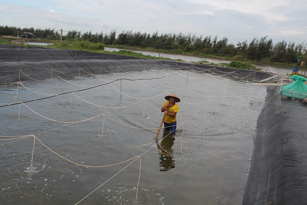 Khu đầm ao nuôi con giống thủy sản của ông Đinh Văn Phượng thường xuyên được vệ sinh, xử lý đúng kỹ thuật, bảo vệ môi trường nghiêm ngặt.