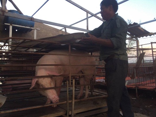 | Ông Phúc che cho lợn nái bằng những tấm ngói vỡ |