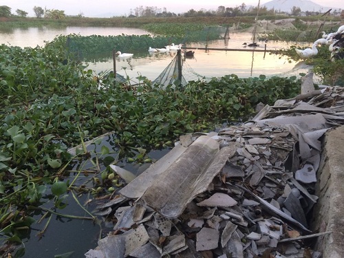 | Ngói vỡ đã chất đống hồ nước