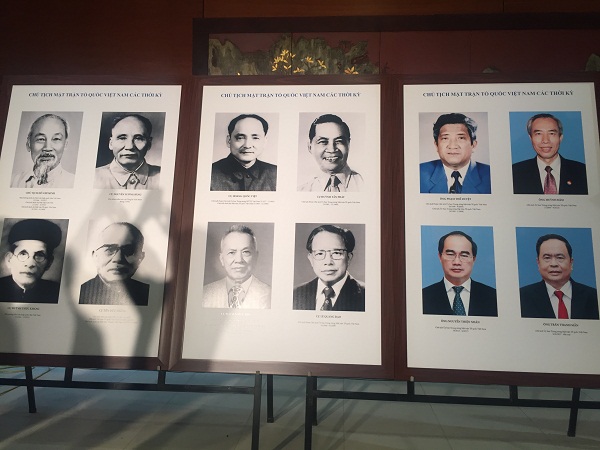 Triển lãm được trưng bày theo các chủ đề gồm: Hình ảnh các vị Chủ tịch Ủy ban Trung ương MTTQ Việt Nam qua các thời kỳ và các kỳ Đại hội MTTQ Việt Nam; Hoạt động của Mặt trận Tổ quốc Việt Nam tham gia bảo vệ chủ quyền lãnh thổ, biển đảo của Tổ quốc và hoạt động của các tổ chức thành viên.Những hình ảnh trưng bày tại Triển lãm giúp cho mỗi người dân càng thêm tự hào, tin tưởng và ra sức đóng góp hết sức mình để tiếp tục xây dựng và phát huy sức mạnh khối đại đoàn kết toàn dân tộc, vì mục tiêu dân giàu, nước mạnh, dân chủ, công bằng, văn minh..