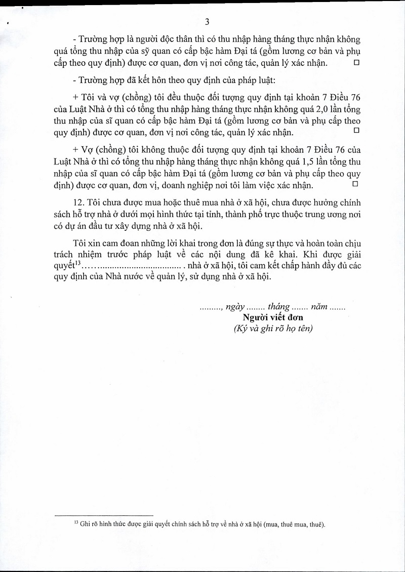 Mẫu Đơn đăng ký mua, thuê mua, thuê nhà ở xã hội