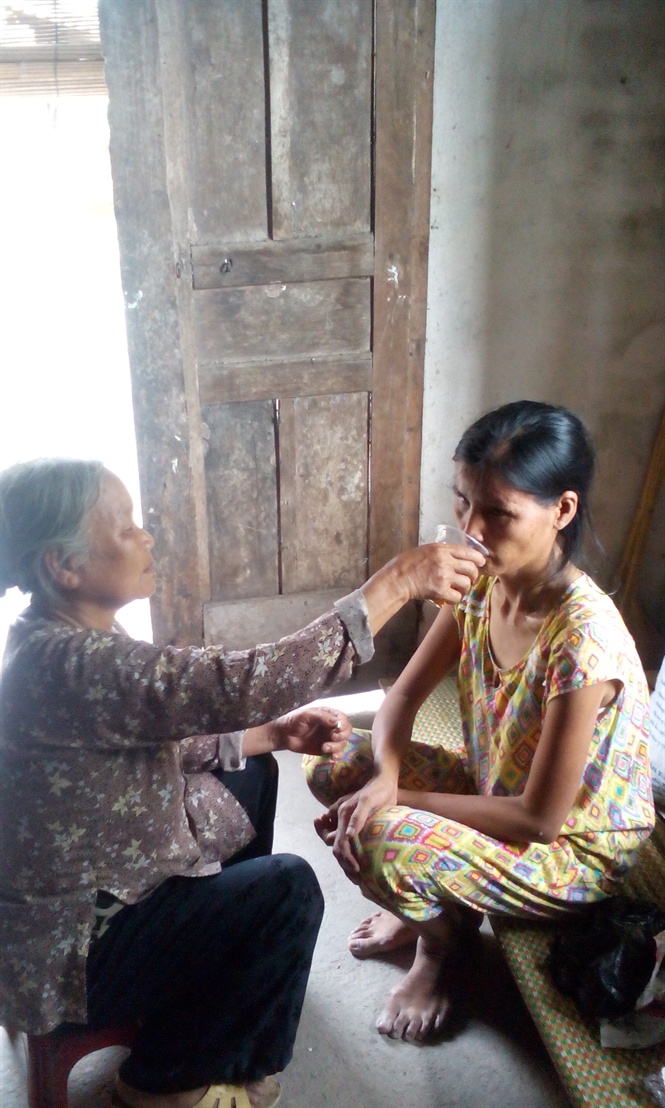 Bà Nguyễn Thị Mỳ (SN 1950) ở thôn Hoàng Xá, xã Khánh Hà, huyện Thường Tín (Hà Nội) chưa có một ngày thảnh thơi khi phải chăm sóc cậu con trai mắc bệnh thần kinh và con dâu bị bệnh tim độ 3 suốt nhiều năm qua.