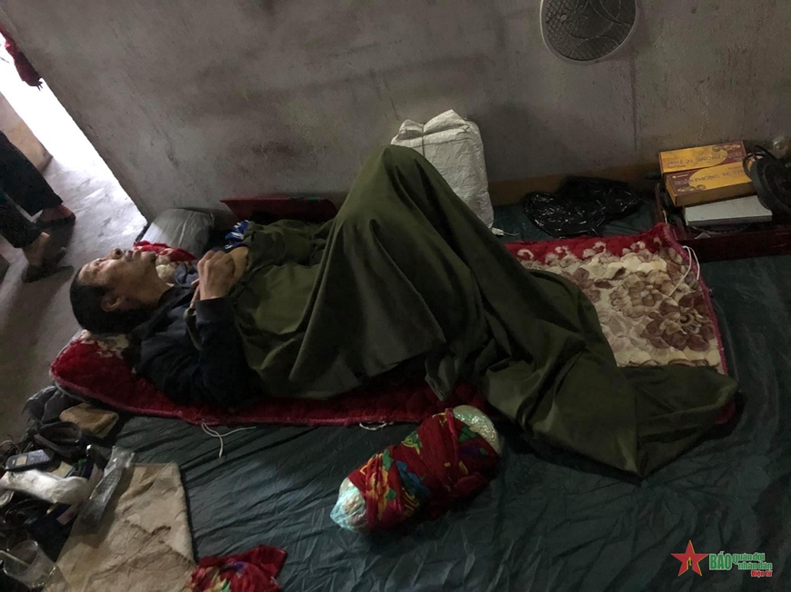 Anh Hùng nằm liệt một chỗ, mọi sinh hoạt đều nhờ một tay mẹ già (Ảnh:Báo Quân đội nhân dân)