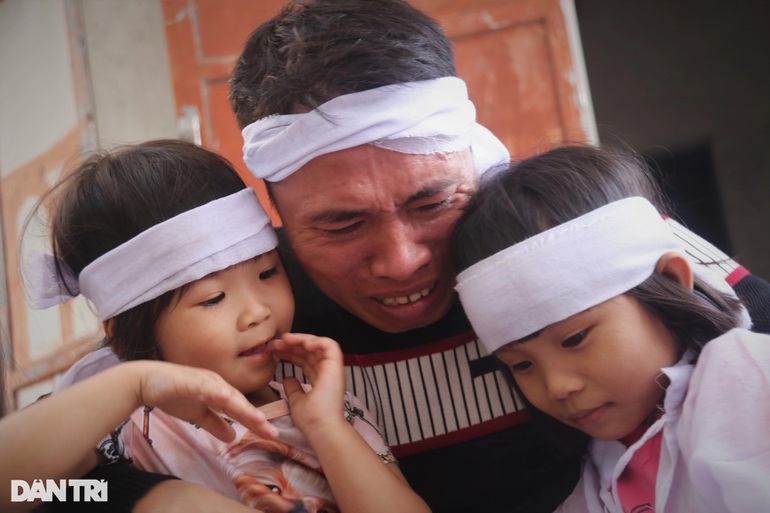 Chị Hồng ra đi để lại 3 con gái, 1 con trai cho chồng nuôi nấng. Cháu lớn nhất mới 11 tuổi còn cháu bé nhất mới 3 tuổi. Những đứa trẻ còn quá nhỏ để hiểu ý nghĩa của vành khăn trắng mình đang đeo trên đầu khiến nhiều người không cầm được nước mắt.