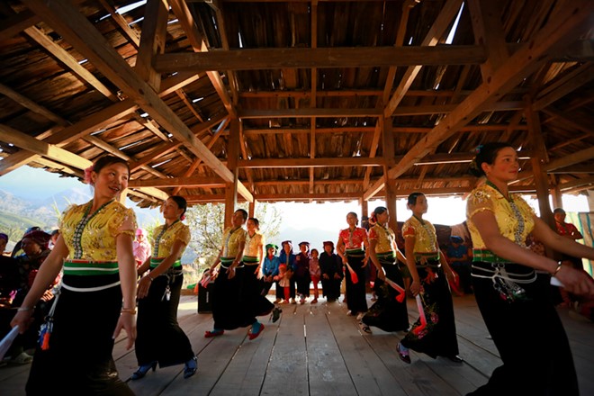 Điệu múa xòe đặc trưng của phụ nữ Thái ở Ngọc Chiến.