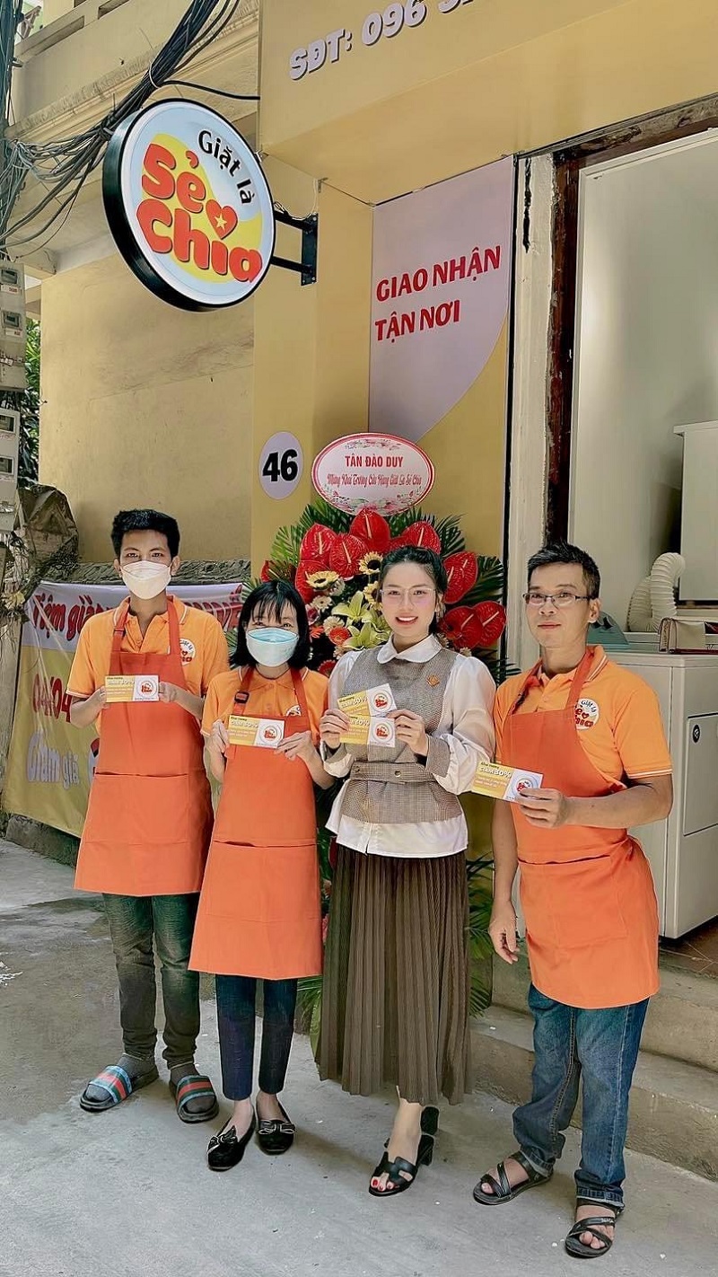 Một cửa hàng giặt là nhỏ và xinh xắn với những nhân viên mặc đồng phục chỉnh tề đang cần mẫn gấp những bộ quần áo cho khách. Khi thấy chúng tôi đến thăm, một anh nhân viên gặp khó khăn về chân niềm nở chào đón và di chuyển thật nhanh để mời chúng tôi vào trong. Một lúc sau, một anh nhân viên khác bị teo cả hai bàn tay từ khi còn nhỏ đạp xe đạp đi giao hàng cho khách vừa về cũng hồ hởi chào chúng tôi. Anh Đỗ Văn Hiểu giới thiệu đây là hai trong số những nhân viên “cứng” của cửa hàng này.