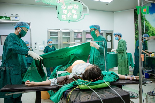 Trước tình hình đó, bác sĩ Phan Đình Sáu cùng ekip các bác sĩ bệnh viện ĐKQT Thu Cúc TCI đã nhanh chóng hội chẩn chuyên khoa và quyết định chuyển phương án từ sinh thường sang phẫu thuật mổ cấp cứu để đảm bảo an toàn tối đa cho hai mẹ con.