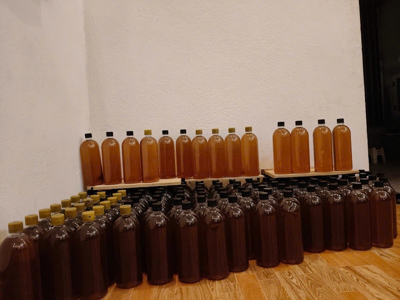 Không chỉ dừng lại ở việc nuôi ong lấy mật để sử dụng trong gia đình, đồng chí Hợi từng bước phát triển mô hình thành hộ sản xuất mật ong thương phẩm. Mỗi năm, sản lượng thu hoạch ổn định đạt khoảng 1.700 lít, tương đương 2,38 tấn, với giá bán trung bình 250.000 đồng/lít, tạo nguồn thu trên 400 triệu đồng/năm. Ngoài ra, gia đình còn bán khoảng 40 đàn ong giống/năm, với giá 600.000 đồng/đàn, mang lại thu nhập bổ sung và góp phần lan tỏa mô hình tới cộng đồng.