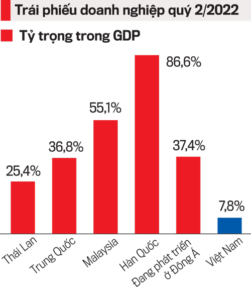 Thị trường TPDN của Việt Nam so với nhiều nền kinh tế khác vẫn còn ở mức khá khiêm tốn. Nếu so theo quy mô của GDP thì đến cuối quý II/2022, TPDN ở Việt Nam chỉ chiếm 7,8% của GDP, trong khi tỷ lệ này ở Thái Lan, Trung Quốc, Malaysia, Hàn Quốc và các nước đang phát triển ở Đông Á lần lượt là 25,4%, 36,8%, 55,1%, 86,6% và 37,4%.