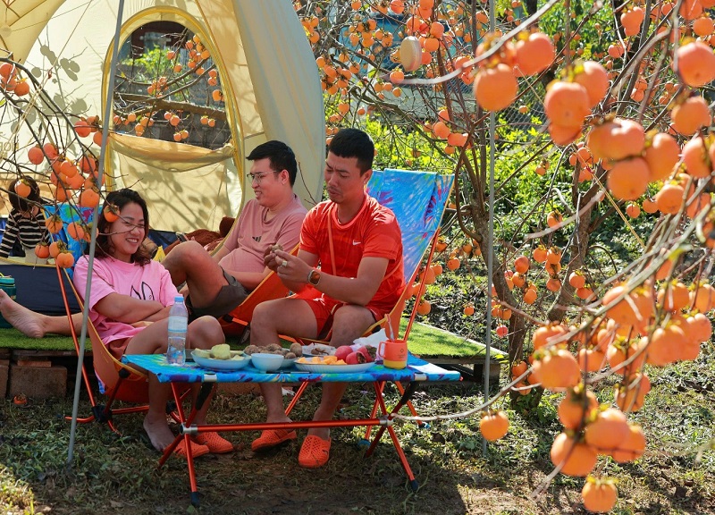 Không chỉ đến để chụp ảnh “check-in-camping” nhiều du khách còn được trải nghiệm hái hồng tại vườn, thưởng thức những quả hồng tươi ngon ngay giữa cao nguyên hay mua vài giỏ mang về làm quà cho gia đình và người thân. Những trái hồng giòn mọng nước, ăn vào giòn và ngọt mát, như chứa cả tinh túy của nắng gió đất trời Mộc Châu.