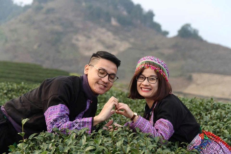 Những chàng trai cô gái trong trang phục truyền của người mông