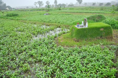 Rau muống vây quanh, một nấm mộ tại khu nghĩa trang của xã