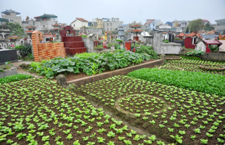Điều đặc biệt, đa phần rau xanh của xã này lại được người dân trồng tại các khu nghĩa trang. Những khoảng đất trống phía trong các lăng mộ, xung quanh các nấm mộ để trồng, rau muống, cải canh, rau thơm, cải xoong…