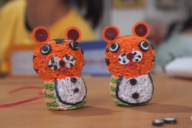 Các học viên đang tập trung làm thủ công giấy cuộn.