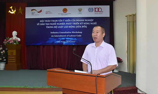 | Ông Đào Văn Tiến, Vụ trưởng Vụ Đào tạo thường xuyên thông tin về quá trình rà soát, sửa đổi nội dung về đào tạo nghề, phát triển kỹ năng nghề trong BLLĐ |