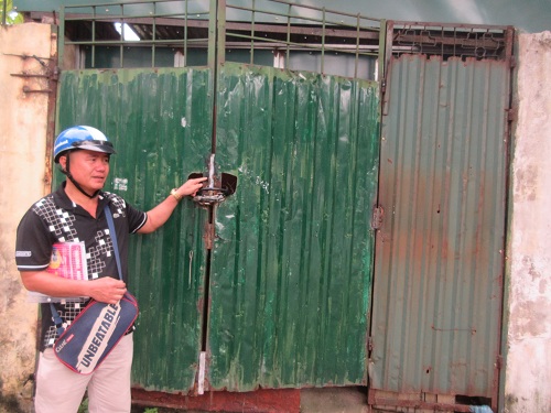 Ông Trần Quốc Trung - Trợ lý Chủ tịch HĐQT Công ty đứng trước ngôi nhà bị cán bộ UBND phường Liễu Giai tự ý khóa và hàn chết cửa lại