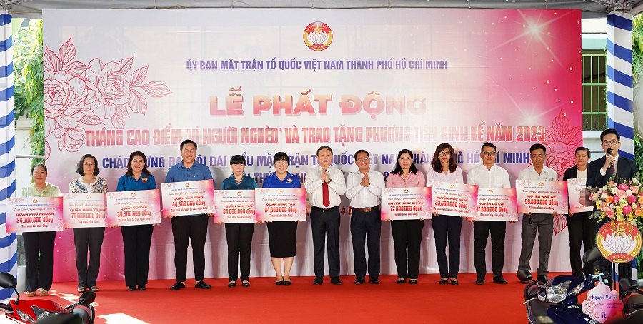 Tại lễ phát động, ban tổ chức, trao tặng kinh phí hỗ trợ 97 phương tiện sinh kế cho người lao động thuộc hộ nghèo, hộ cận nghèo trên địa bàn. Đặc biệt nhằm thực hiện các giải pháp chăm lo cho học sinh, sinh viên có hoàn cảnh khó khăn an tâm học tập, Ủy ban MTTQVN Thành phố tiếp tục chủ trương hỗ trợ học bổng Nguyễn Hữu Thọ cho 2.298 học sinh, sinh viên; vận động đỡ đầu cho 53 sinh viên khó khăn, học giỏi tiêu biểu cho đến khi ra trường; trao tặng 20 sổ tiết kiệm (trị giá 10 triệu đồng/sổ) cho 20 gia đình có trẻ em mồ côi, hoàn cảnh khó khăn; phối hợp cùng HDBank trao tặng 150 máy vi tính cho học sinh hiếu học có hoàn cảnh khó khăn với tổng kinh phí thực hiện dự kiến là hơn 10 tỷ đồng.