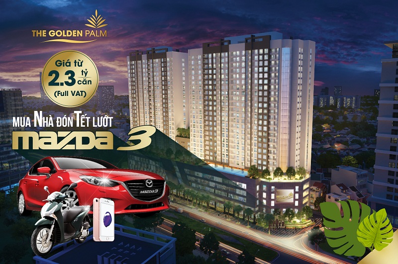 Từ nay đến hết 31/01/2017, khách hàng mua căn hộ dự án The Golden Palm sẽ có cơ hội nhận xe ôtô Mazda 3 cùng nhiều quà tặng giá trị khác.