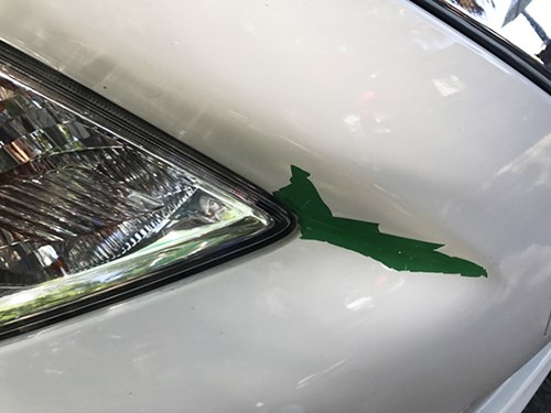 Sau một tháng mua mới và sử dụng Nissan Sunny 1.5XL, lớp sơn màu trắng phủ bên ngoài bị bong tróc đã hiện rõ màu sơn lót xanh giống như loại xe chuyên bán cho các hãng chạy taxi