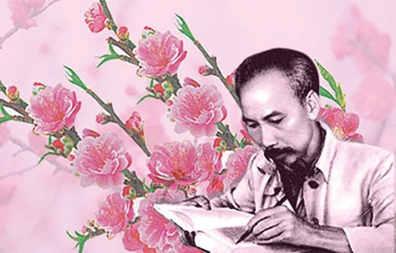Đảng – Bác – Mùa xuân như những cặp phạm trù lịch sử tự nhiên trong cuộc sống và trong thơ Bác kính yêu. Mảng văn Bác Hồ chúc Tết phong phú và tràn đầy đạo lý và tình người. Nhiều dịp cuối năm, khi đất nước chuẩn bị sang xuân và đón mừng năm mới, Bác viết bài cho báo và gửi thư cho nhiều cộng đồng yêu nước. Từ sau Cách mạng tháng Tám, trên cương vị đứng đầu Đảng và Nhà nước Việt Nam Dân chủ Cộng hòa, Bác luôn luôn dùng văn cho sự nghiệp kháng chiến và kiến quốc.