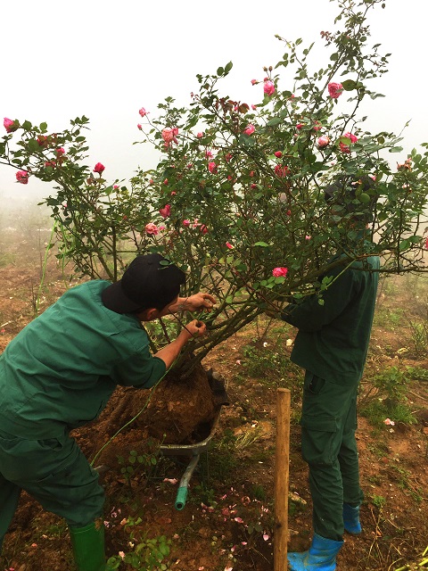 Anh Nguyễn Tiến Mạnh – Trưởng Bộ phận cảnh quan–cây xanh của khu du lịch chia sẻ: “Đất đai được chở lên khu vực ga đi từ dưới chân đồi với đá nhiều hơn đất, mọi người lại phải cẩn thận lọc đất riêng. Bề mặt vườn thoát nước kém nên những lúc mưa to anh em phải thay nhau trực để khơi nước, cứu cây. Hoa hồng cũng là giống hoa đỏng đảnh, ưa đất tốt, nên thường xuyên phải cải tạo”