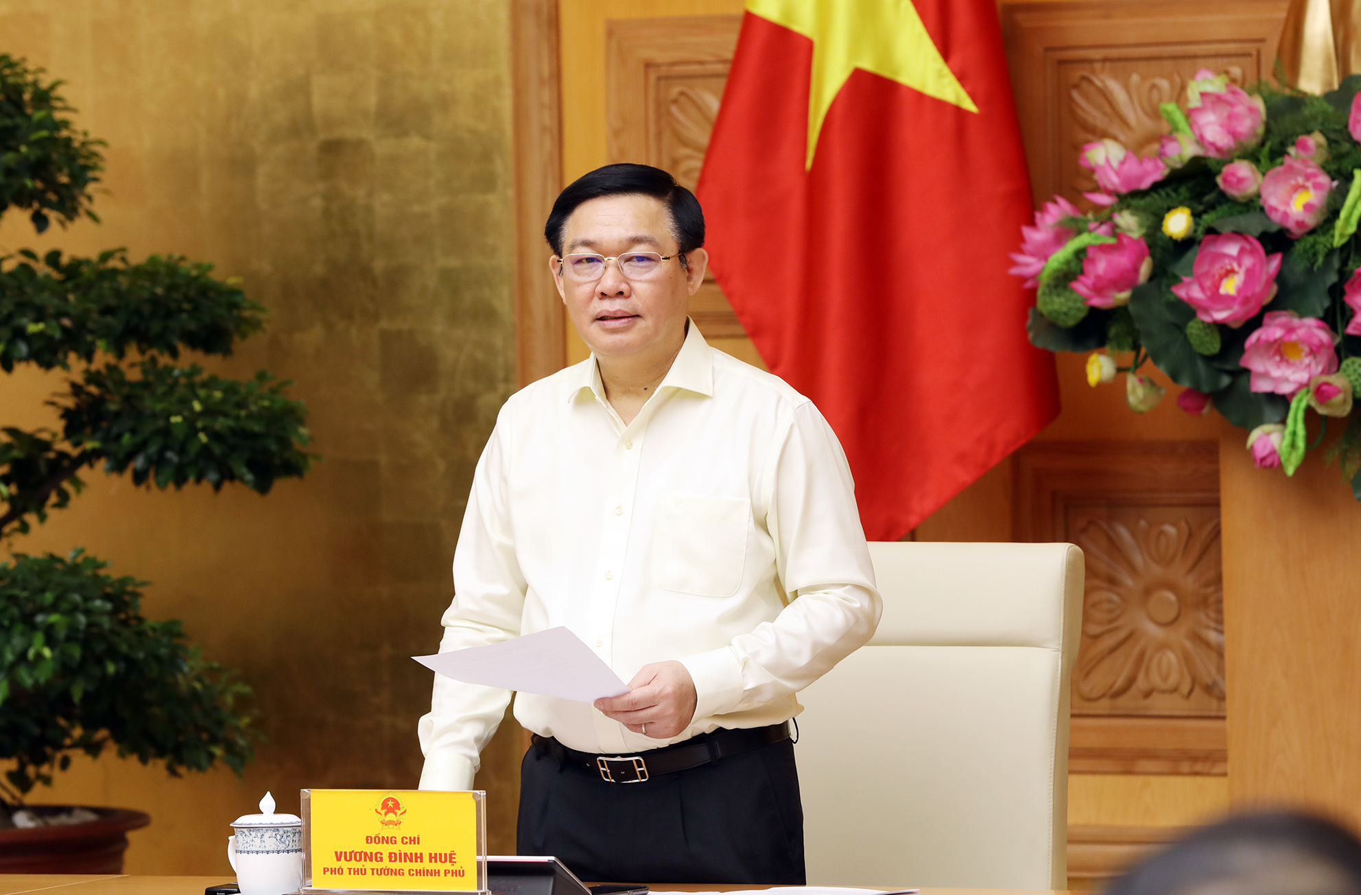 | Phó Thủ tướng Vương Đình Huệ phát biểu tại cuộc họp. Ảnh: VGP/Thành Chung |